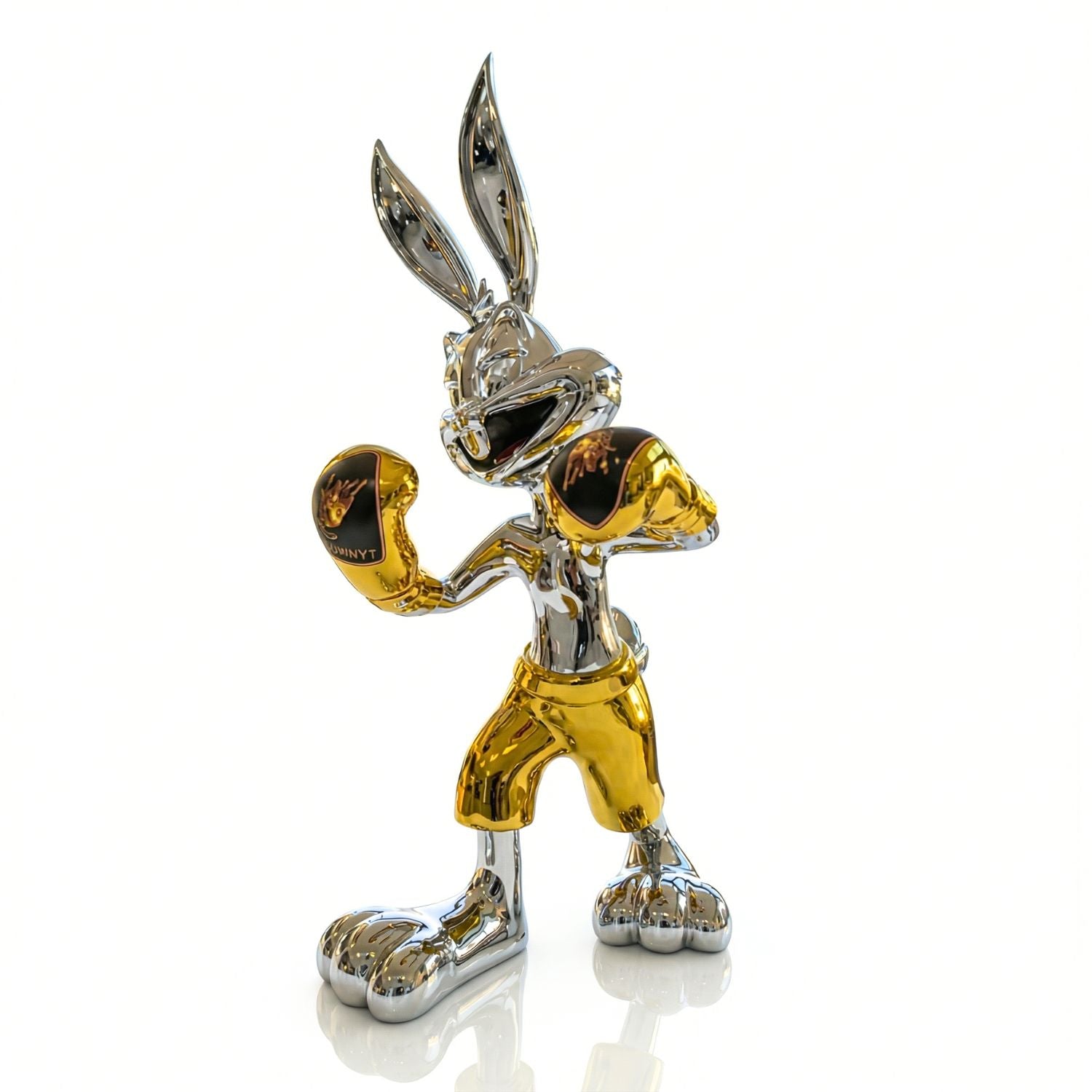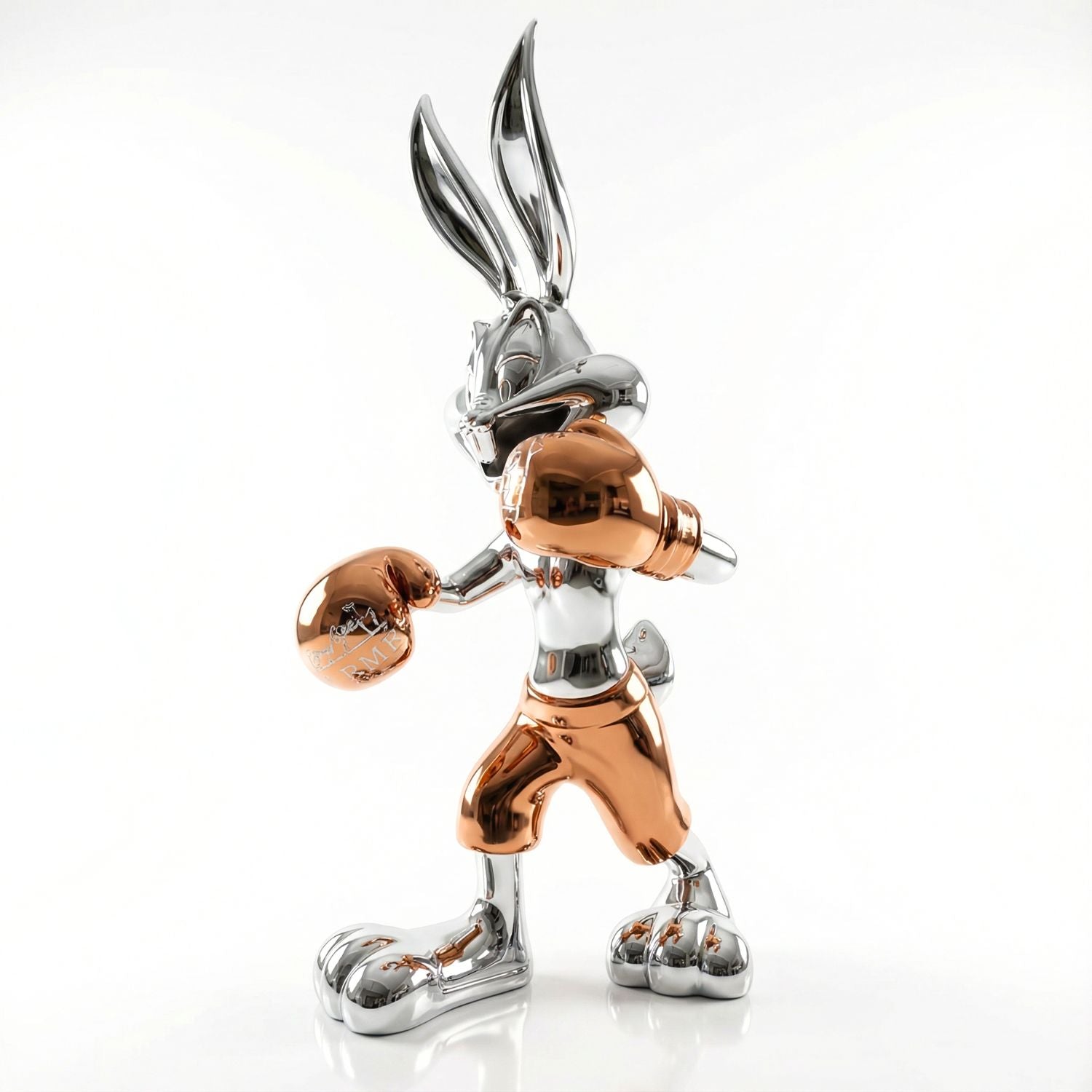 The Bad Bunny "High-End Boxer"™ transforms a beloved animated icon into a sleek, powerful, and utterly modern work of art. The dynamic boxing stance, combined with the luxurious, mirror-like chrome and saturated color accents, makes this sculpture a provocative and stylish statement piece.